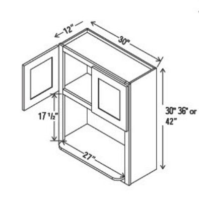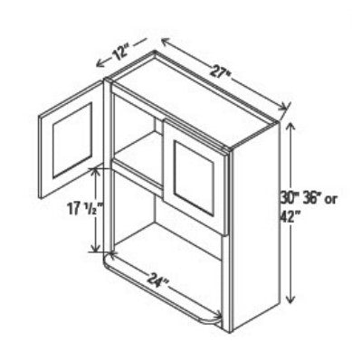 - The opening dimensions on the 30" wide cabinet are 27"W x 17 3/4"H.