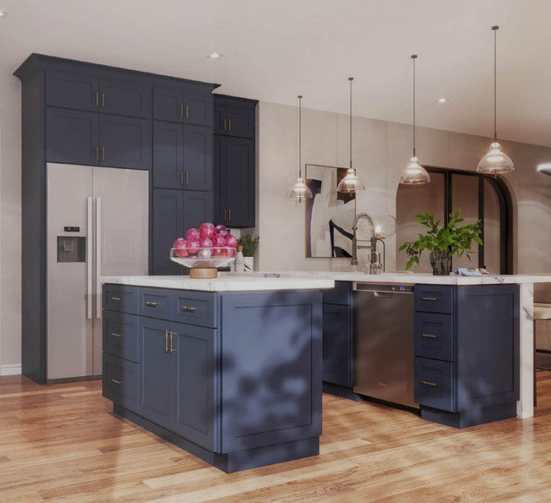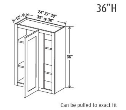 Navy Blue Shaker wall blind corner cabinet 36" tall.